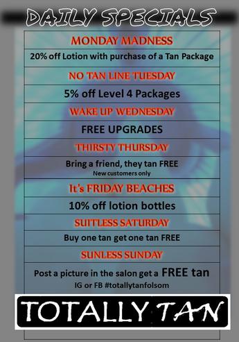 You simply can not TAN without the proper lotion! Our Totally Tan Team takes great pride in the special lotions we offer. Exploit our knowledge and insight and purchase the best lotions available at discounted prices right now only!
